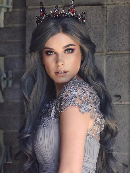 Dark Gray Long Wavy Synthetic Lace Front Wig SNY090