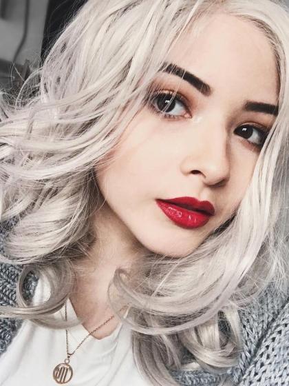 Gray Shoulder Length wavy Synthetic Lace Wig-SNY045