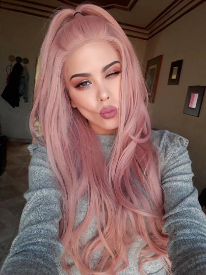 Peach Pink Long Wavy Lace Front Synthetic Wig SNY102