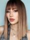 Ombre Brown Golden Short Straight Bobo Synthetic Wigs with Bangs LG912
